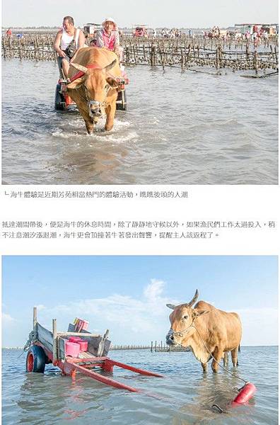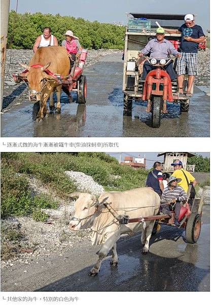 老牛拉車日漸凋零,鐵牛採蚵車,卻沒有與合法化,居民質疑觀光發展做半套,希望"採蚵車"也能有配合觀光,接地氣的管理辦法。海空步道爆紅 「鐵牛」採蚵車載客卻違法 https://bit.ly/3FGyrVq
