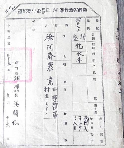 早期牛隻如車輛一般,須列帳登記管制及課稅等