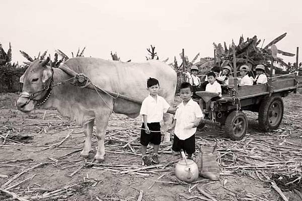 照片紀錄的是民國60年代,穿梭在鄉間產業道路上的拼裝鐵牛車,當時農村生產的農作物、水果等都靠這些鐵牛車來搬運。之所以稱為鐵牛車,主要是過去農村搬運物資以利用牛車為主,到了60年代有了機械引擎為動力的拼裝車,這些機械化的引擎取代了牛的角色,於是農民們在慣稱的牛車名詞前,加上一個鐵字,作為機械化動力的代稱,因此而有鐵牛車的名稱,,但有些地區也把鐵牛車稱為鐵馬,其原因也相似。