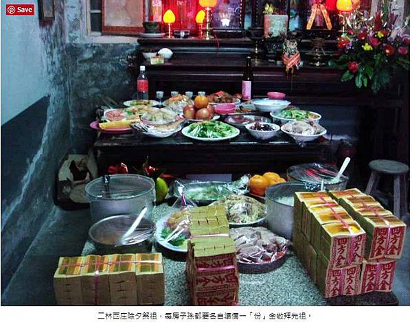 二林西庄除夕祭祖,每房子孫都要各自準備一「份」金敬拜先祖。