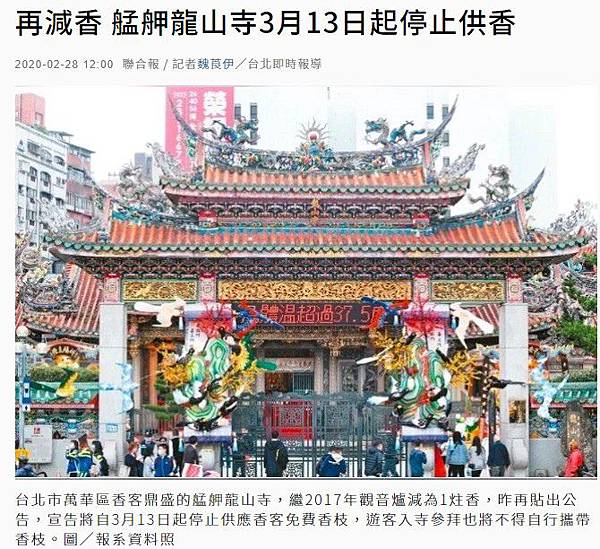 再減香 艋舺龍山寺3月13日起停止供香 | 生活新聞 | 生活 | 聯合新聞網