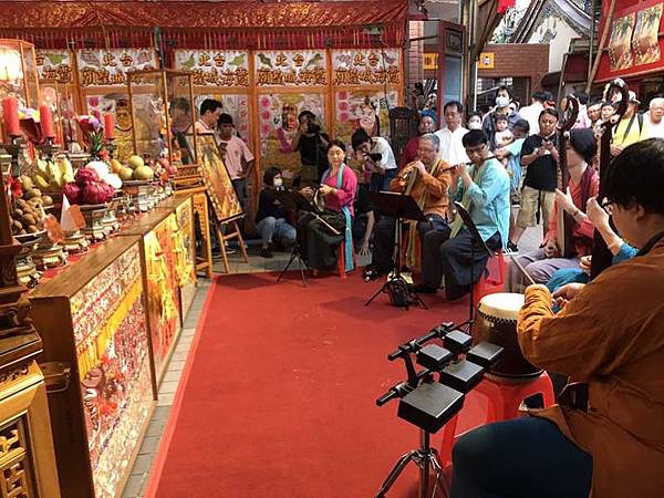 城隍廟前廣場還有月琴表演「西北雨」、「燒肉粽」、「點仔膠」、「望春風」等台灣民謠,民眾一起大合唱,歌聲連綿不絕。