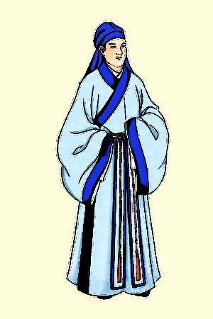 《禮記.玉藻》記載,「朝玄端,夕深衣。」諸侯的大夫士,早晨在家服玄端。玄端是中國古代的玄色禮服。晚上在家服深衣。深衣是古代上衣、下裳相連綴的一種服裝。因為「被體深邃」,因而得名。深衣是直筒式的長衫,它的特點是使身體深藏不露,雍容典雅。