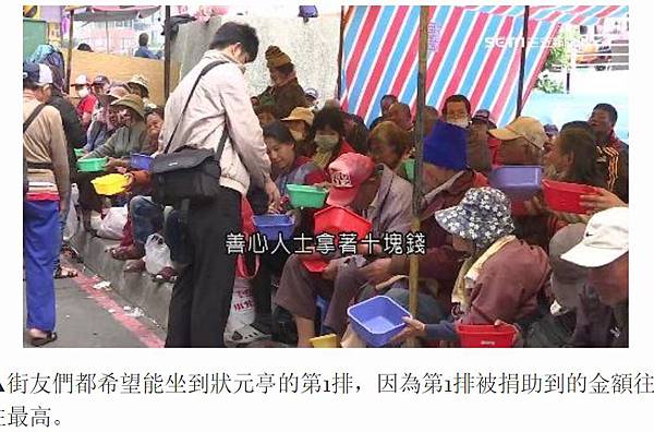 善心人士拿著10塊錢,先往第1排街友的小臉盆放,預算多一點的才有機會發到第2排或第3排。從大年初8到初9,2天1夜的收入能上看1萬5千元,但卻不是每個人都能坐在狀元亭第1排。
