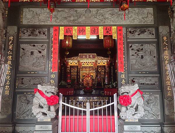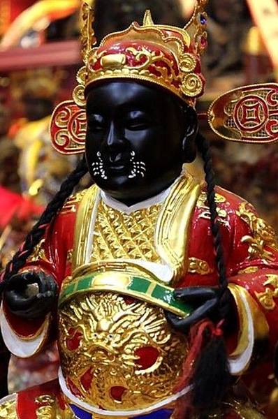 西秦王爺是北管戲的守護神,祂被供奉在側殿田都元帥(南管戲守護神)的旁邊,祂面貌威嚴而且留著長鬍子。