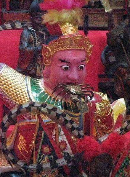 依不同地區,蟹有畫在神像額頭或口部等處。