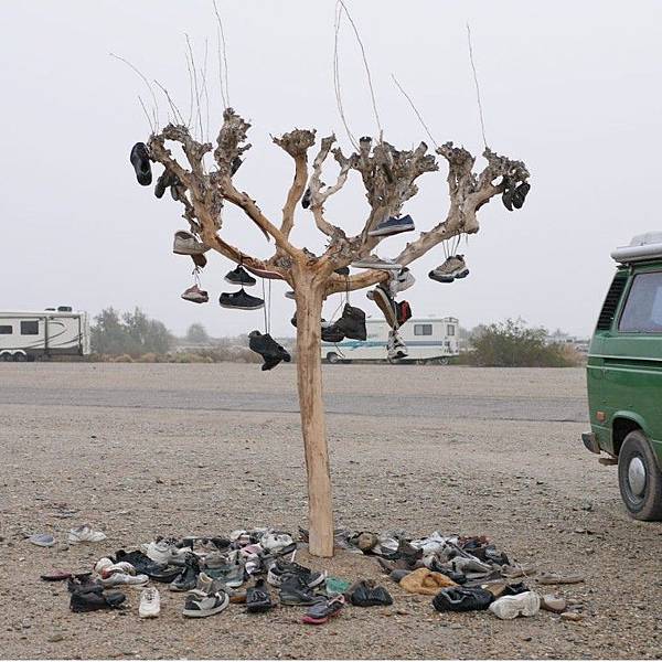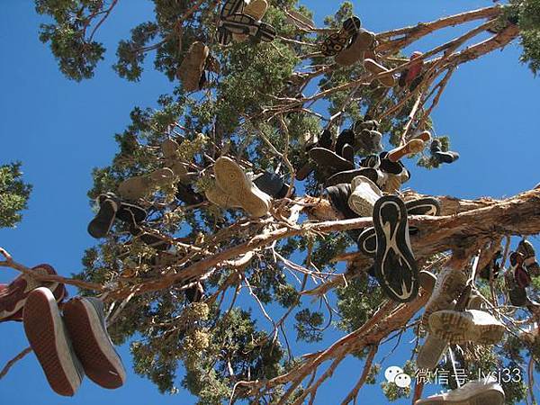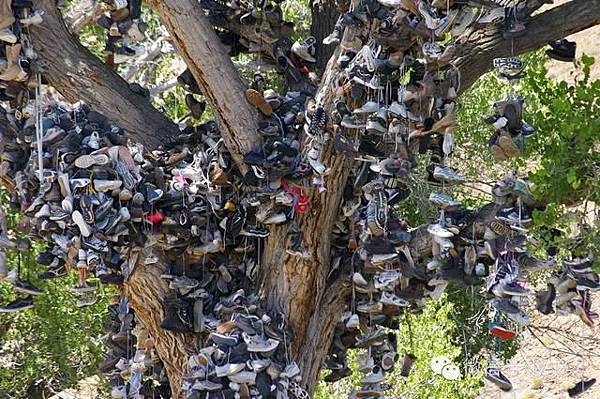 美國公路樹上掛滿鞋子,當地居民及遊客路過紛紛脫鞋