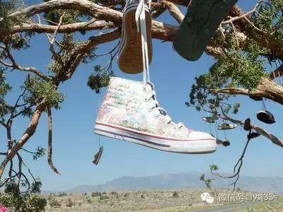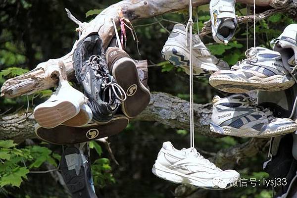 沒有黃絲帶就算了,掛這麼多鞋子是什麼情況?難道這棵奇妙的「鞋子樹」不是用來許願的?