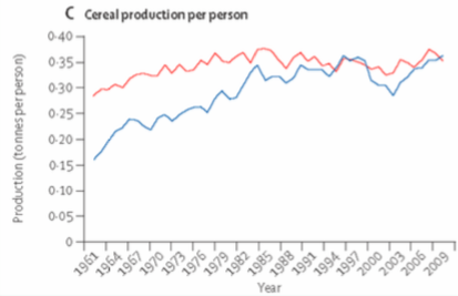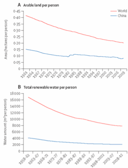 既然談到糧食自給率,那麼除了耕地大小之外,有多少人口需要依靠這些耕地來過活也是重要的因素。在世界銀行的網站 (link is external)上可以查到世界各國的「每人耕地面積(arable land per person)」,數字大概是從0.00(應該是不到百分之一公頃吧)到澳洲的2.15,相差之大,真是人比人氣死人啊。台灣不在列表上,大概是政治問題吧,不過我們可以自己算一下。以81萬公頃除以2,300萬人口,每人可以分到的耕地面積是0.035公頃,算是在倒數幾名的。台灣的耕地本來就小了,更應該要好好保護啊。