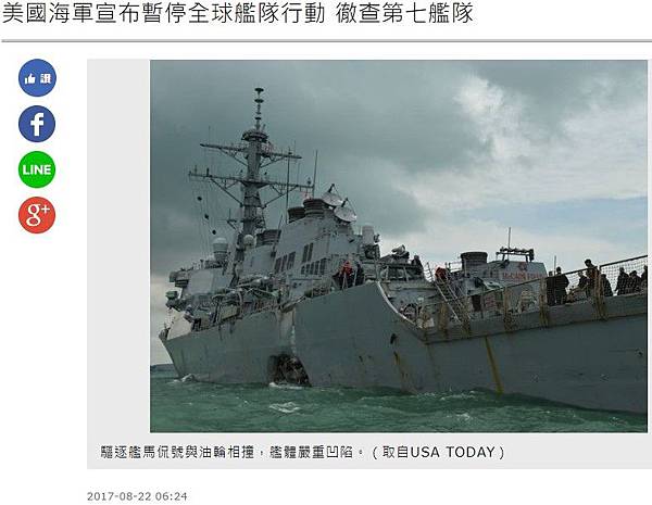 美國海軍宣布暫停全球艦隊行動 徹查第七艦隊 - 國際 - 自由時報電子報 - https://goo.gl/hgWma2