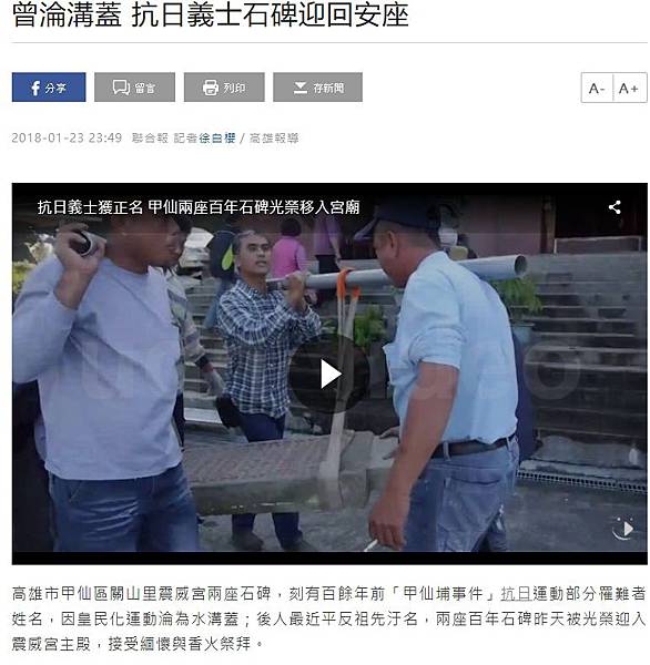 曾淪溝蓋 抗日義士石碑迎回安座 | 綜合 | 要聞 | 聯合新聞網 - https://goo.gl/LjSjRk