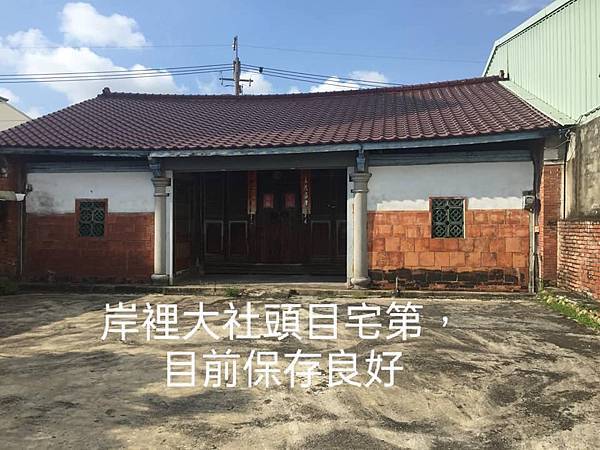 18世紀初康雍年間,岸裡社群在岸裡大社(今臺中縣神岡鄉大社村與岸裡村)形成一個約200戶、1,000餘人規模而固定性的平埔集村,成為早期臺中盆地北面平原以散村為主要聚落景觀之一特別現象。岸裡大社是清代岸裡各社群的政治核心所在,岸裡社總頭目居住之地,由今豐原市中山路岸裡國小東側豐社路即可進入部落。清代岸裡大社部落的布置與別處平埔聚落,有所不同;通常小規模集村型的平埔聚落,周圍有竹子或樹叢圍繞,作為防禦工事,大社聚落四周除了竹圍外,外緣尚繞以人工水圳(即貓霧拺圳,日治時期改稱葫蘆墩圳),形成雙重的防禦體系。除了以原始楓樹林、楓林溝圍繞所形成天然防禦工事的「北門」外,大社聚落原設有東西南三城門,一則受漢文化影響,二則18世紀岸裡社的經濟力較其他平埔族群雄厚,城牆建造厚實,且頗為講究,門上皆有漢文的題字(如南門門樓的南薰獻瑞);東西南等三門於日昭和10年(1935年)中部大震災後,實施市區改正,予以拆除。三城門與北門內的範圍,大致與今大社村村界吻合,是岸裡大社舊聚落所在。日治時期廢除街庄社小總理,改置街長、庄長後,於日明治30年(1897年)改名「大社庄」,簡稱「大社」;戰後則劃分成「大社村」與「岸裡村」。岸裡村為清代岸裡大社村落外圍的防禦地帶。