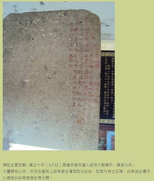 *不過今日掛在采田福地的「義勇可嘉」匾額並不是乾隆所書的真匾,在采田福地的介紹中提到:「根據竹塹社民報導,乾隆 25 年(1760)乾隆皇帝御筆所賜的真匾,在日治時期昭和 10 年(1935)舉行台灣始政 40 週年博覽會時,被台北博物館借去展覽未還」,因此「現在懸掛之匾額為後來摹刻者。」