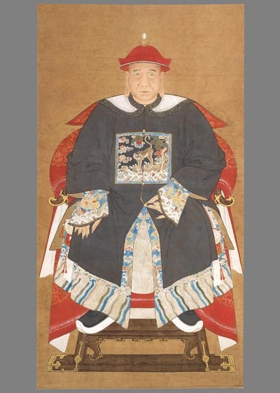身穿清廷所賜衣冠的新港社土目貓老尉與九骨夫妻畫像