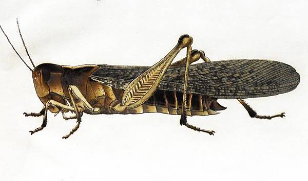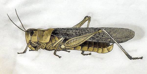 日治初期蝗災為患肆虐農田之雄蝗虫繪圖