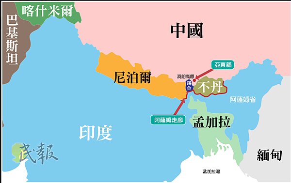 只要比較1975年前後的世界地圖,就可以明白,這一年的世界地圖上,不丹和尼泊爾之間,還有一個國家錫金,1975年,錫金全民公投後,決定併入印度,留下所謂多蘭高地未定界或稱洞朗高地,也是目前中印衝突所在,印度反對中國在此修路,改變現狀,中國卻認為沒有越界,中國一直把多蘭高地作為監看印度和連接不丹及尼泊爾要衝,兩國因此問題,堅持不下。