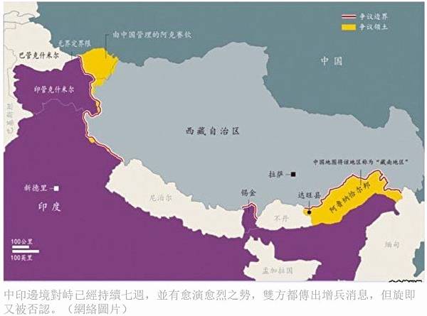 中印邊境對峙已經持續七週,並有愈演愈烈之勢,雙方都傳出增兵消息,但旋即又被否認。(網絡圖片)