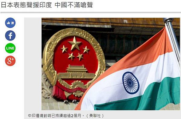 分享日本表態聲援印度 中國不滿嗆聲到Facebook 分享日本表態聲援印度 中國不滿嗆聲到Line 分享日本表態聲援印度 中國不滿嗆聲到Google+