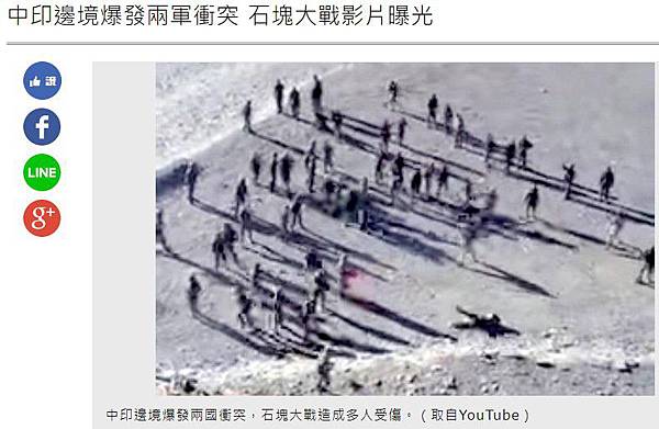 分享中印邊境爆發兩軍衝突 石塊大戰影片曝光到Facebook 分享中印邊境爆發兩軍衝突 石塊大戰影片曝光到Line 分享中印邊境爆發兩軍衝突 石塊大戰影片曝光到Google+