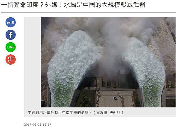 分享一招斃命印度?外媒:水壩是中國的大規模毀滅武器到Facebook 分享一招斃命印度?外媒:水壩是中國的大規模毀滅武器到Line 分享一招斃命印度?外媒:水壩是中國的大規模毀滅武器到Google+
