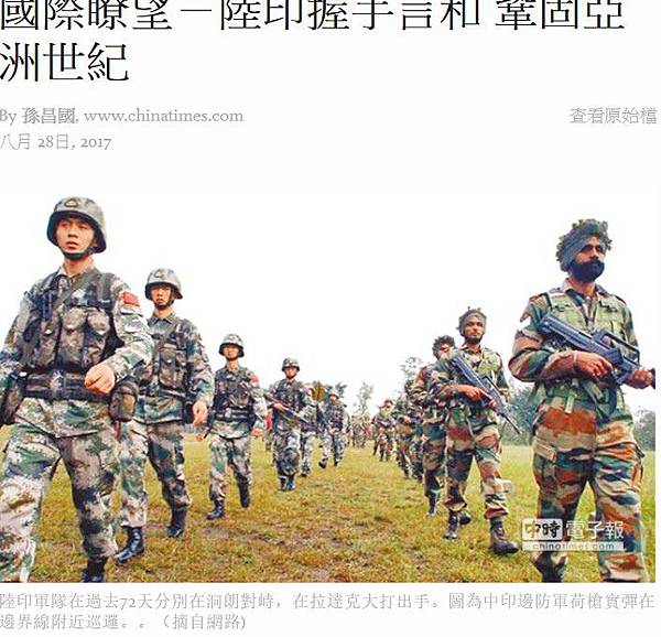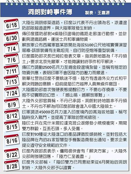 大陸對印度步步墊高緊張形勢之際,傳印度自邊界逐步撤軍,但雙邊官方都未證實,唯印外長昨仍表示已做好戰爭準備。(摘自網路)