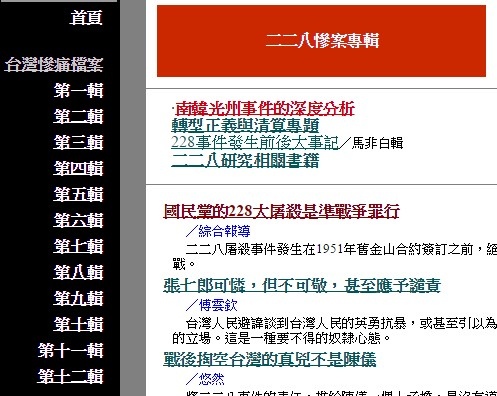 經過無數民主前輩的努力下,二二八事件漸漸從禁忌變成公共議題,從被掩蓋的歷史慢慢被發掘。二二八事件死亡的人數至今仍然未定,政府和民間的數字兜不攏,不同報告的結論亦不盡相同,許多真相仍不明。圖/取自維基百科(公有領域)