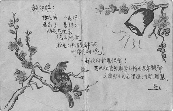 蔡鐵城在監獄期間,寄給妹妹蔡敏的明信片。