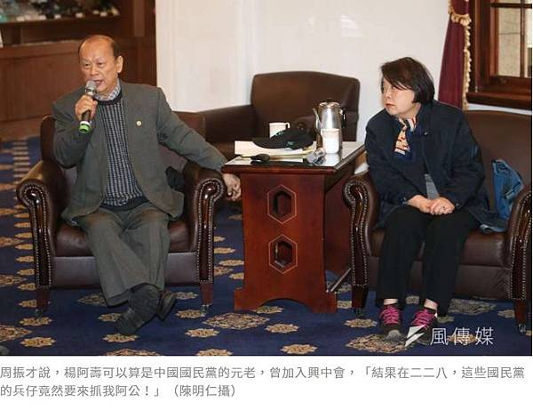 3名受難者中,最讓周振才難以理解的或許是楊阿壽的遭遇。周振才說,楊阿壽可以算是中國國民黨的元老,曾在日本攻讀醫科時加入興中會,「結果在二二八,這些國民黨的兵仔竟然要來抓我阿公!」