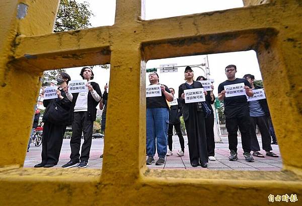 台北市政府主辦的台北市二二八紀念活動28日登場,民間團體「無力者」帶著標語到二二八公園柵欄前靜坐表達訴求,強調代誌無解決、原諒無可能,並欲前往會場紅龍區靜坐,遭遇警方攔阻,雙方短暫推擠。(記者劉信德攝)2024/02/28 17:56