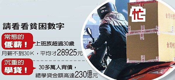 青貧族失業率高、起薪低,一出社會就因學貸等債務壓身,且越來越多人從事派遣工等的非...