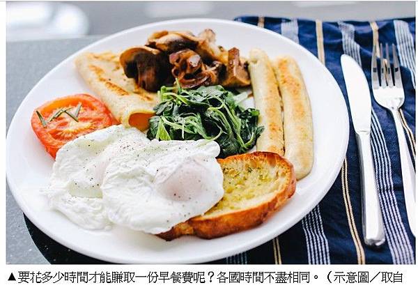 ▲要花多少時間才能賺取一份早餐費呢?各國時間不盡相同。(示意圖/取自pixabay)