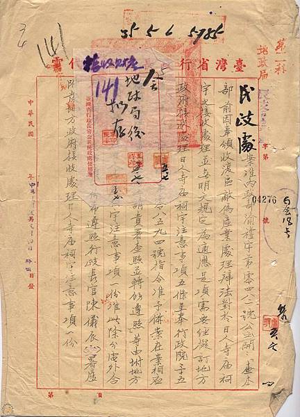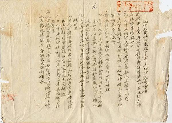 地方政府接收處理日人寺廟祠宇注意事項