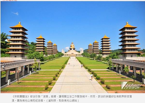 《宗教團體法》修法引發「滅香」疑慮,讓相關立法工作緊急喊卡,然而,該法的爭議卻在佛教界餘波蕩漾。圖為佛光山佛陀紀念館。(資料照,取自佛光山網站)