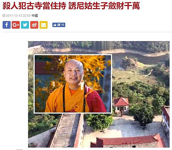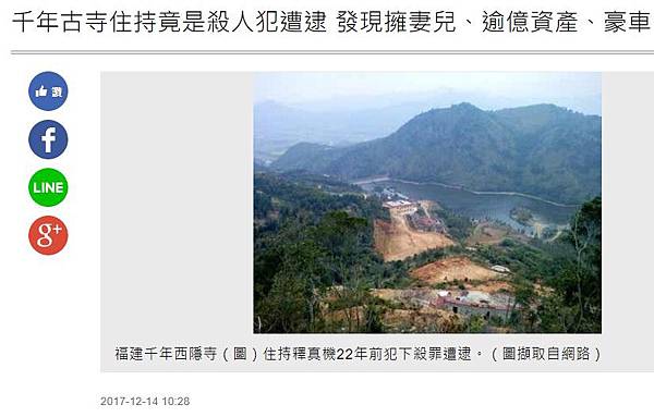 分享千年古寺住持竟是殺人犯遭逮 發現擁妻兒、逾億資產、豪車到Facebook 分享千年古寺住持竟是殺人犯遭逮 發現擁妻兒、逾億資產、豪車到Line 分享千年古寺住持竟是殺人犯遭逮 發現擁妻兒、逾億資產、豪車到Google+