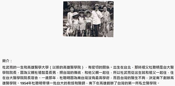 我初中時,高雄醫學院起了很大的風波。據我所知,問題的癥結在於董事長陳啟川,把學校的錢1200萬台幣放在個人帳戶,院長杜聰明要他拿出來,他拿不出來,反而要把院長解聘。高醫的董事會和教授分成陳派和杜派,互相攻擊。我父親杜祖智那時在高醫任教,也受到攻擊。我父親對我說,他在高醫是為了幫助我祖父,可是因為高醫的糾紛,他決定離開,去美國留學。他先去了賓州大學,後來去了阿拉巴馬大學做博士後。在我13歲那年,媽媽帶著我們三兄弟去阿拉巴馬州,從此離開了台灣。