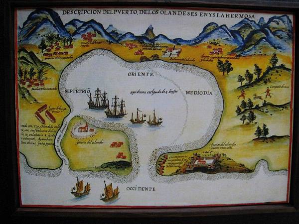 1626年荷蘭人大員港口圖(18世紀西班牙重繪)。(維基共享資源)