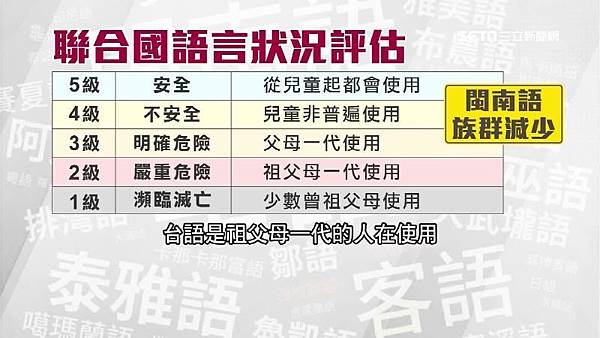 按照教科文組織的標準,台語已經屬於第二級「嚴重危險」。