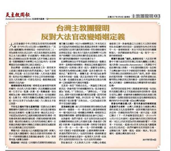 天主教會表示,一男一女結合的婚姻是「神計畫的一部分,目的是創造新生命」,而同性戀性行為「本質是錯亂失序」。該教令指出,同性婚姻並非造物者計畫的一環,因此不能受到天主教會的祝福,梵蒂岡表示「對同性婚姻的祝福不能被認為合法。」