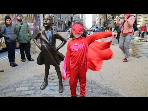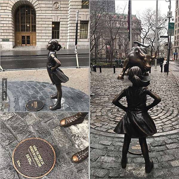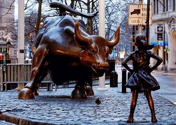 金牛雕像已經成為了華爾街的標誌,三八國際婦女節當天,這裡又多了一個雕塑:一座小女孩的青銅雕像與公牛對視,旁邊的匾牌還寫著:「認識女性的領導能力」。