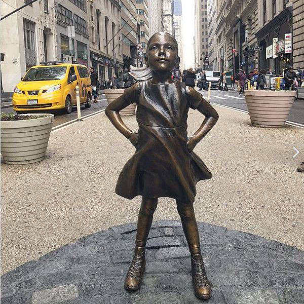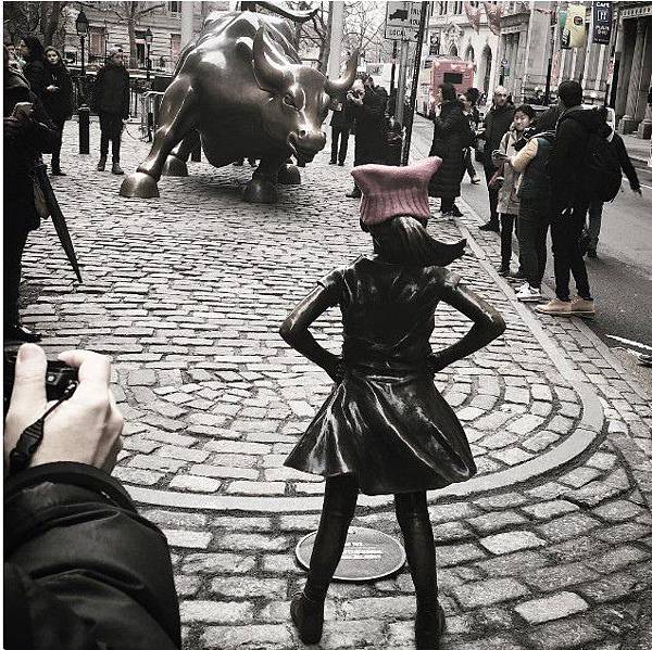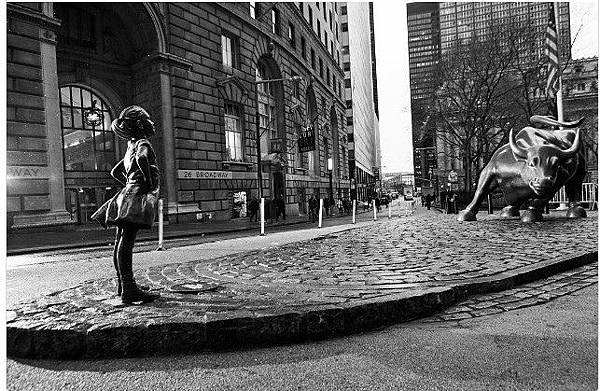 華爾街的銅牛享譽國際,到此一遊的觀光客往往在銅牛前殺死不少相機的記憶體空間。最近,資產管理規模高達 2.5 兆美金的 State Street Global Advisors 和紐約市政府官員,在國際婦女節之前,在銅牛前樹立了一尊無畏女孩(The Fearless Girl),作為呼籲董事會增加更多女性董事的活動之一,當然,從更廣泛的角度來看,這也是對社會宣揚女性權利的一種象徵。
