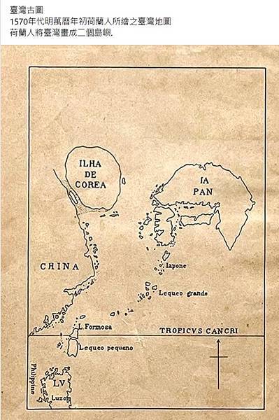 1570年代明萬曆年初荷蘭人所繪之臺灣地圖