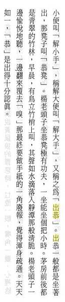 91. 破天荒 破天荒 出恭 荊州(湖南)位處僻地 鄉試時 , 所有考生禁語 . ,沒多少進士,人稱荊 南為「天荒」,當地的 考生稱「天荒解」。 唐 宣宗大中四年,長沙人 劉蛻中進士,破了「天 荒解」,故稱為「破天 荒」 101 遇到想上廁所時須舉牌 , 牌的兩側分別寫上“入靜” 與“出恭”二字 , 所以演變 上廁所為出恭