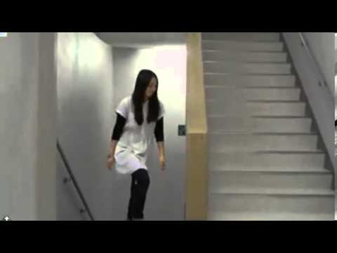 當一個人走上樓梯後,幾乎在同一時間,又從下面的樓梯走了上來,後來,還找了一對男女做實驗,男生在原地不動,另外女學生再走一遍樓梯,並讓攝影機跟 著一鏡到底拍攝,結果女學生上樓之後,再往上走的時候,竟然遇到剛剛樓下的男生,女學生嚇的往下跑,結果一個轉角,又看到同樣的男生在她要下樓的地方等著 她,她整個嚇到腳軟,臉上出現不可思議的樣子。
