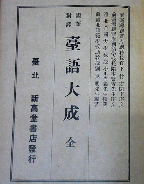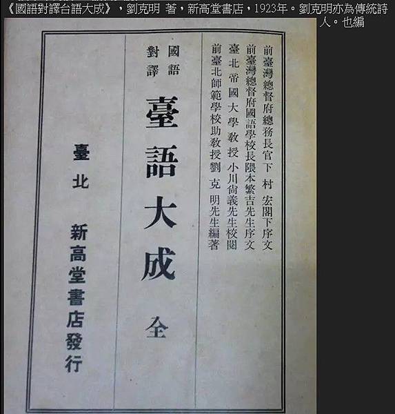 《國語對譯臺語大成》(1916年,「國語」係指日語)