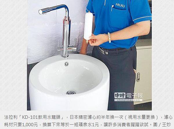 強調低耗材、高品質過濾且節能的「法拉利KD-101飲用水龍頭」銷售率攀升,看準國人注重高品質飲用水需求,與日本技術合作開發,自來水經過水龍頭過濾,就可以直接生飲,透過日本中空纖維膜技術,成功與水龍頭結合,提供生飲功能,生飲水更經過日本檢驗合格以及台灣CNS8088法規認證。