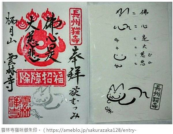 雲林寺貓咪御朱印。(https://ameblo.jp/sakurazaka128/entry-12088379252.html)