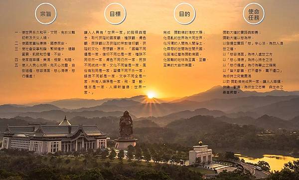宗教主旨目的;以博愛、公益、教育、慈善、文化、教育為目的走向,兼容世界各大宗教。