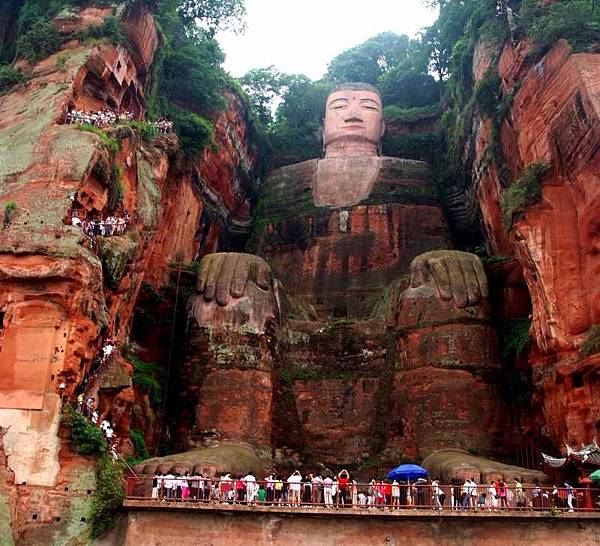 世上最大的彌勒石像「樂山大佛」,在四川樂山岷江東岸凌雲山的斷崖上。