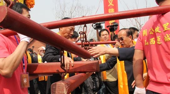 郭台銘今日與王金平一同赴新北市土城區的順聖宮參拜關公,郭台銘受訪時表示,王金平是關公兄弟,在台灣不管哪黨,王當院長的貢獻是大家有目共睹。(王金平)為人圓融,所以他無職一身輕,但民間聲望都非常高,我們第一次拜關公就是在高雄,結緣於關公就是講義氣。