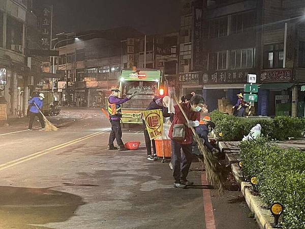 元宵夜激情過後遺留大量炮屑及垃圾。台南市清潔人員清晨展開環境清理,迅速恢復市容。(圖由南市環保局提供)